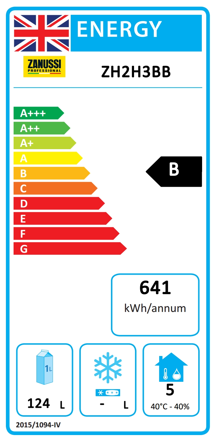 - Yearly and daily energy consumption (EU Reg. 2015/1094): 641kWh/year - 1.76kWh/24h