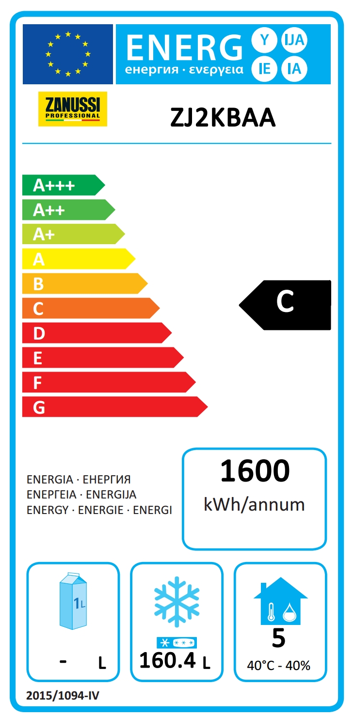 - Yearly and daily energy consumption (EU Reg. 2015/1094): 1600kWh/year - 4.38kWh/24h